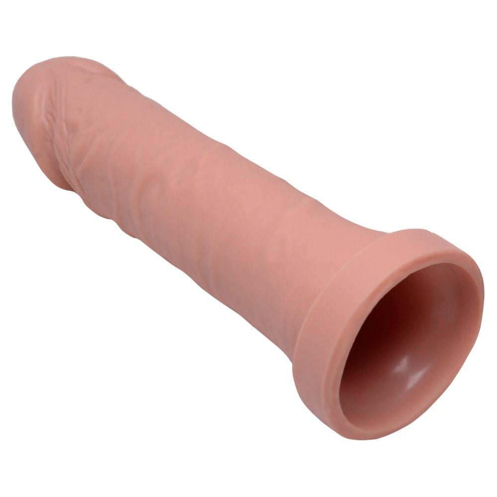 Funda para pene realista semirrígida hecha de material suave, contiene venas prominentes en todo el cuerpo, base ancha y correa elástica para un mejor uso.