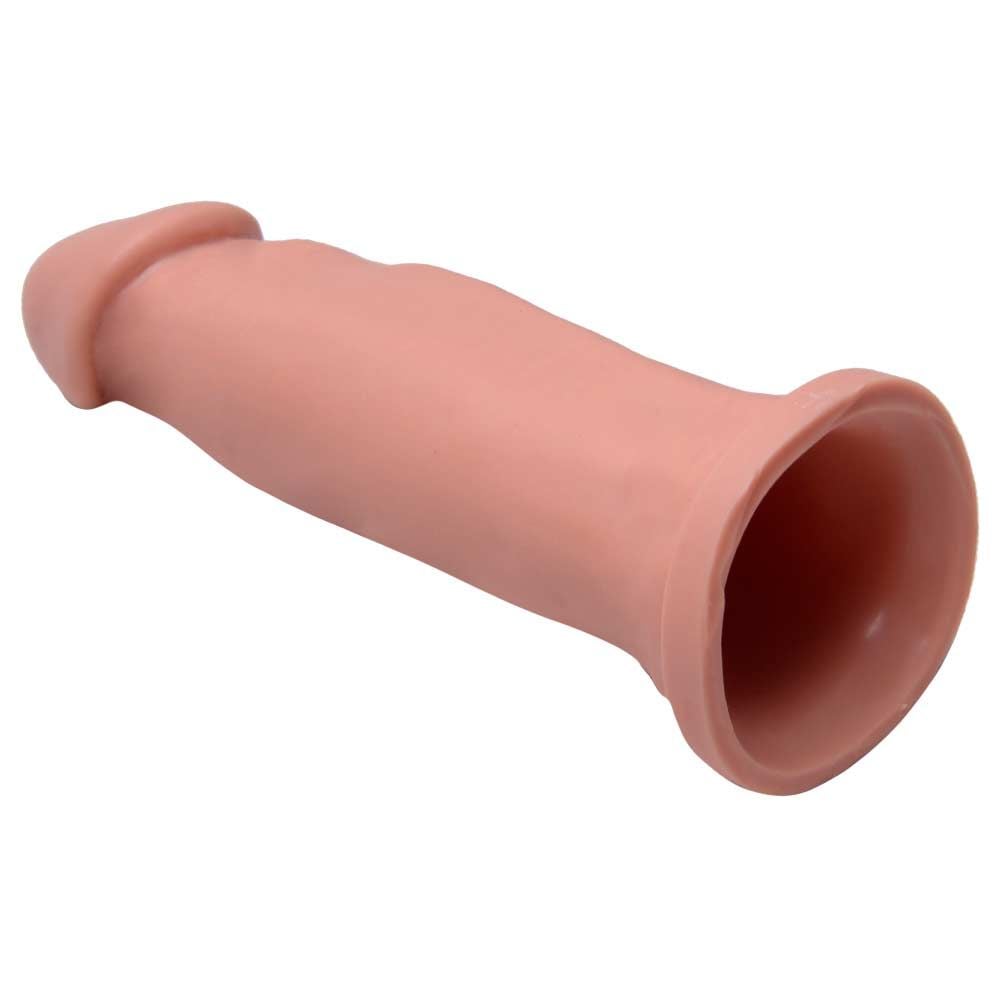Funda para pene realista semirrígida hecha de material suave, contiene venas prominentes en todo el cuerpo, base ancha y correa elástica para un mejor uso.